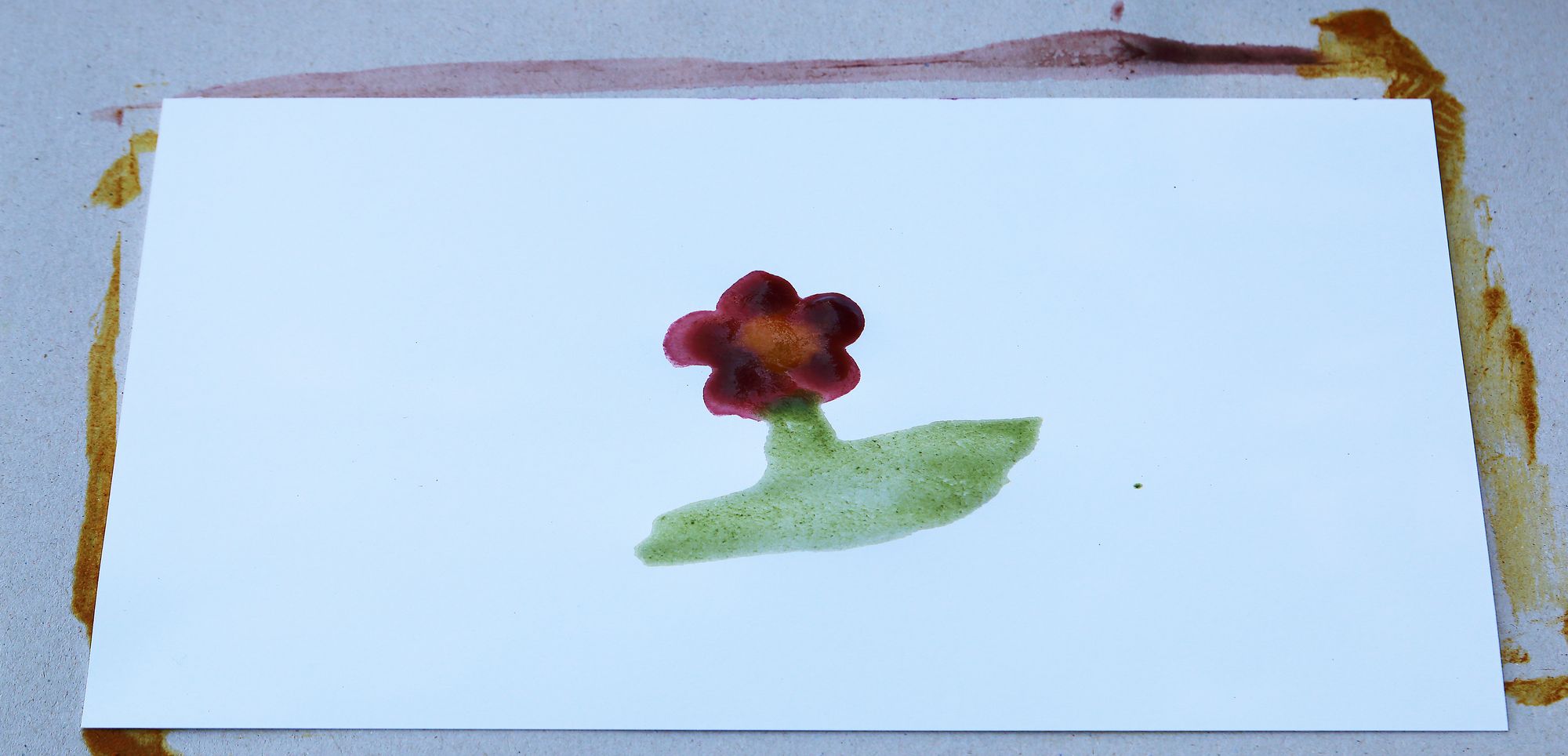 Schließlich malte sie mit den von uns angebotenen Naturfarben ruhevoll und konzentriert eine rotblühende Blume auf ein Blatt Papier. Als die Familie ging, ließ sie ihr Bild am Stand liegen. Ich lief dem Jungen hinterher und drückte ihm das Bild für seine Mutter in die Hand. Diese Begegnung mit der Familie hat mich sehr gerührt.